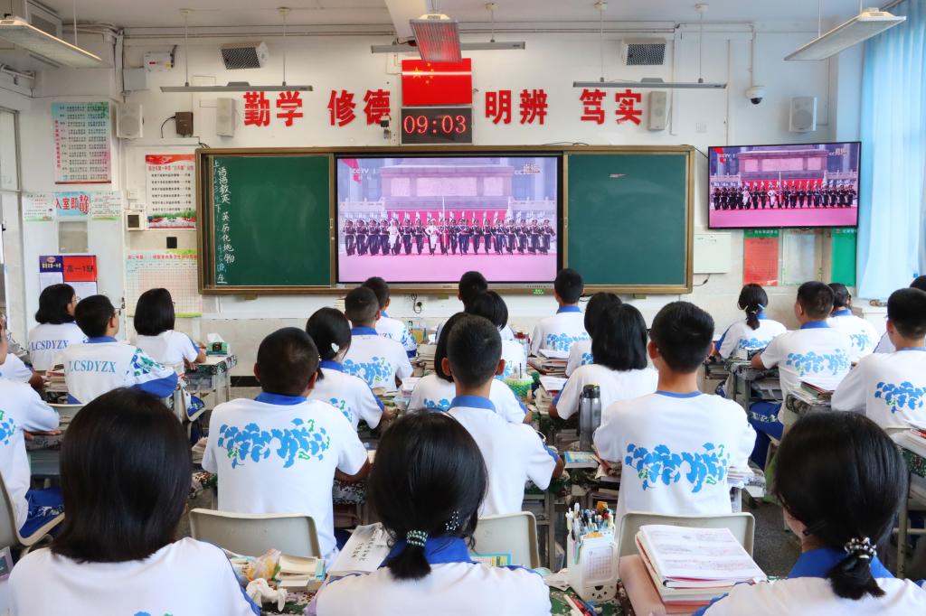 临沧市一中组织全校师生集中观看纪念中国人民抗日战争暨世界反法西斯战争胜利80周...